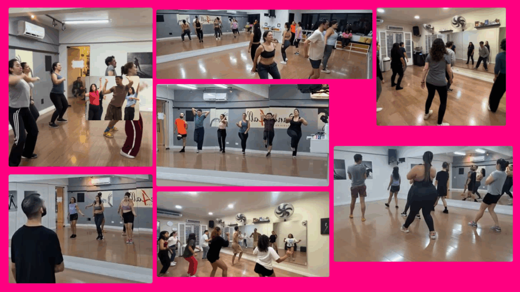 A cada quatro aulas, de 1h de duração, aprendemos uma coreografia diferente!